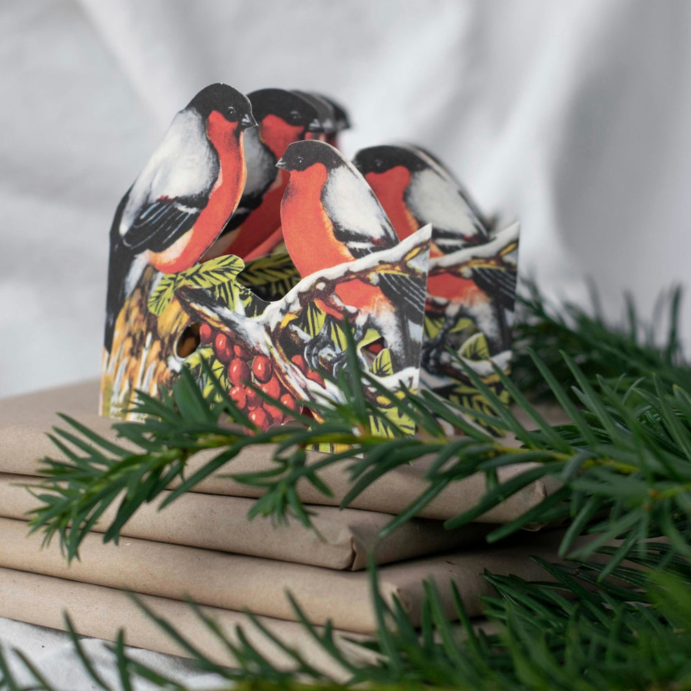 Pappersrader med domherrar. Söt dekoration till jul och hela vintersäsongen.