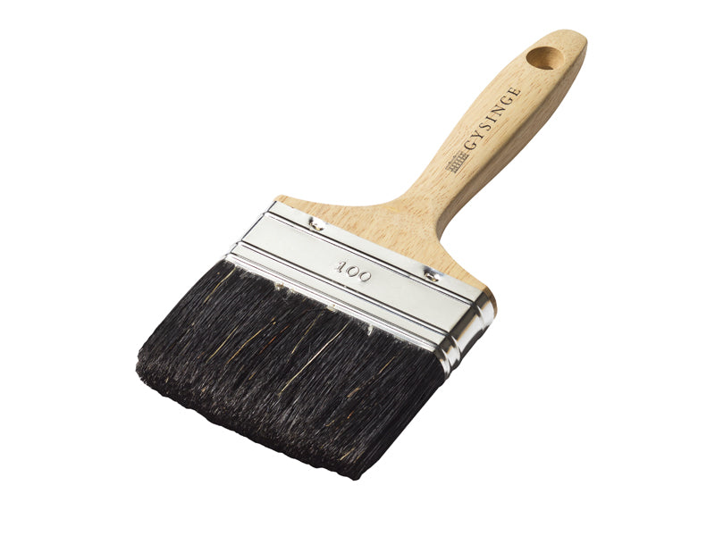 Bred lite kraftigare pensel för linoljefärg, slamfärg, äggoljetempera, matt linoljefärg, fernissa med mera. Till golv, bredare panel eller vägg.