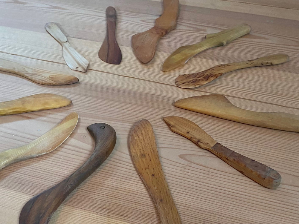 2. Två slöjdämnen. Ett i lind och ett i eneträ (ca 18 x 4 cm)