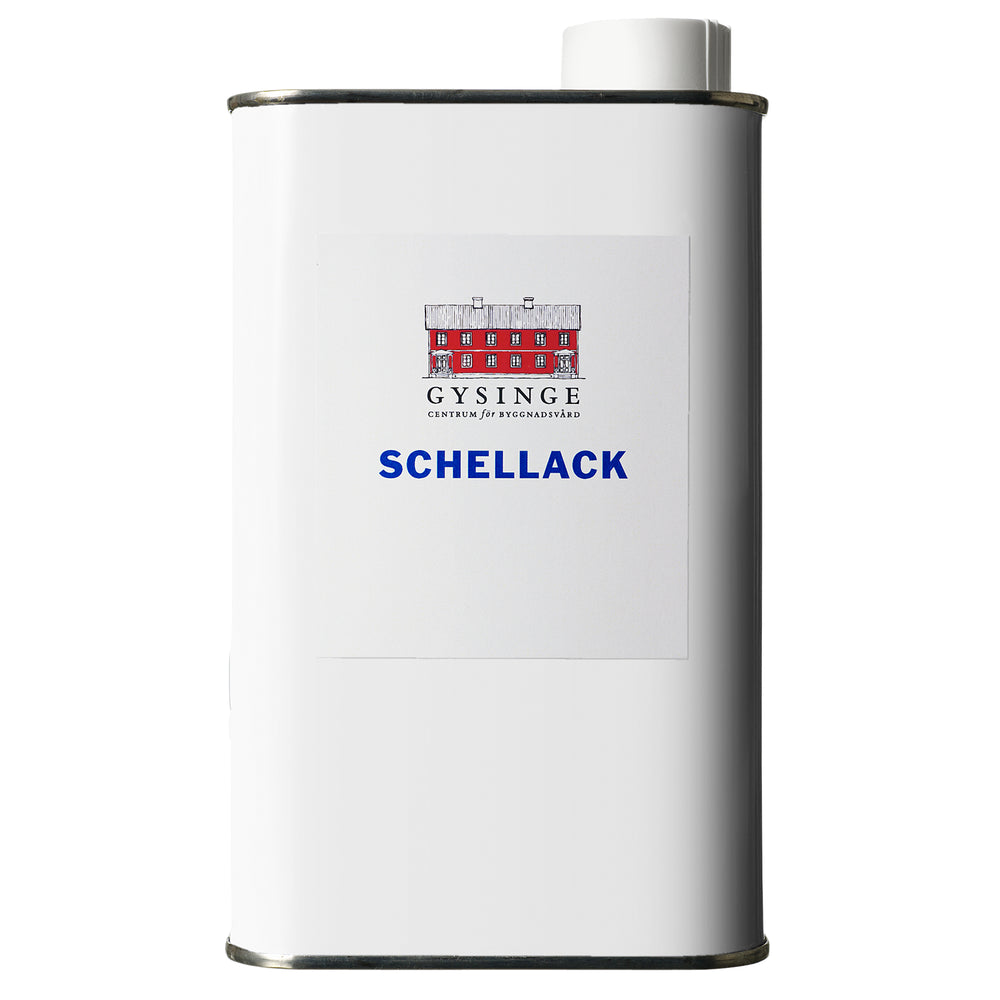 Schellack används till schellackpolering och till att isolera kvistar före målning inomhus. Genom schellackisolering undviker man de bruna fläckar som uppstår när kvistarna ännu inte kådat färdigt. Mycket hög kvalitet. Tillverkad av enbart ren sprit och schellackflingor. Kan förtunnas med T-röd.